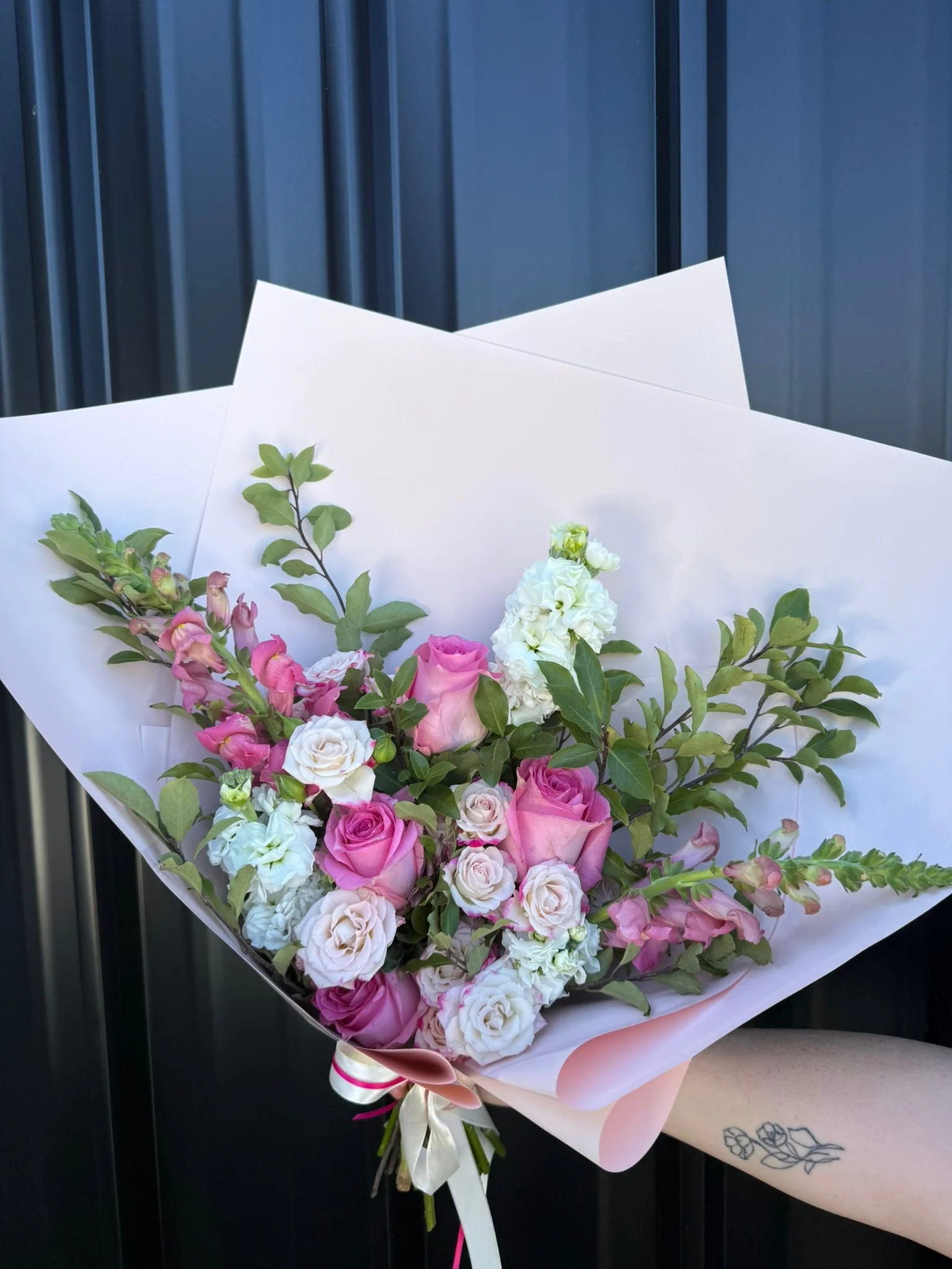 Image 1 of 3 Image 2 of 3 Image 3 of 3 Mothers Day Blush from $65.00 Arranged in a soft blush colour palette of pinks, creams and fresh greens, featuring a seasonal selection of premium blooms. Size: Select Size Standard Deluxe Purchase Added! Arranged in a soft blush colour palette of pinks, creams and fresh greens, featuring a seasonal selection of premium blooms.